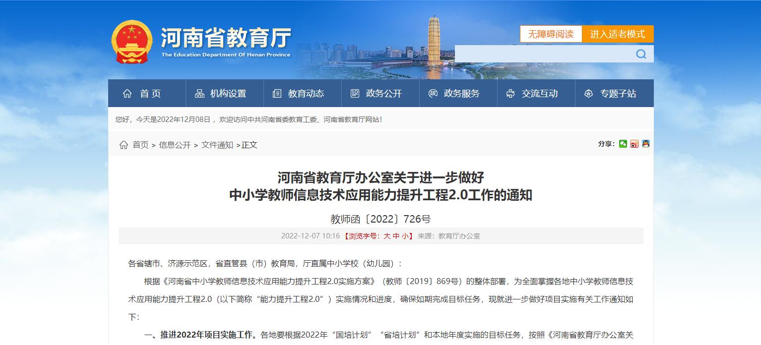 河南省教育廳辦公室關(guān)于進一步做好 中小學(xué)教師信息技術(shù)應(yīng)用能力提升工程2.0工作的通知