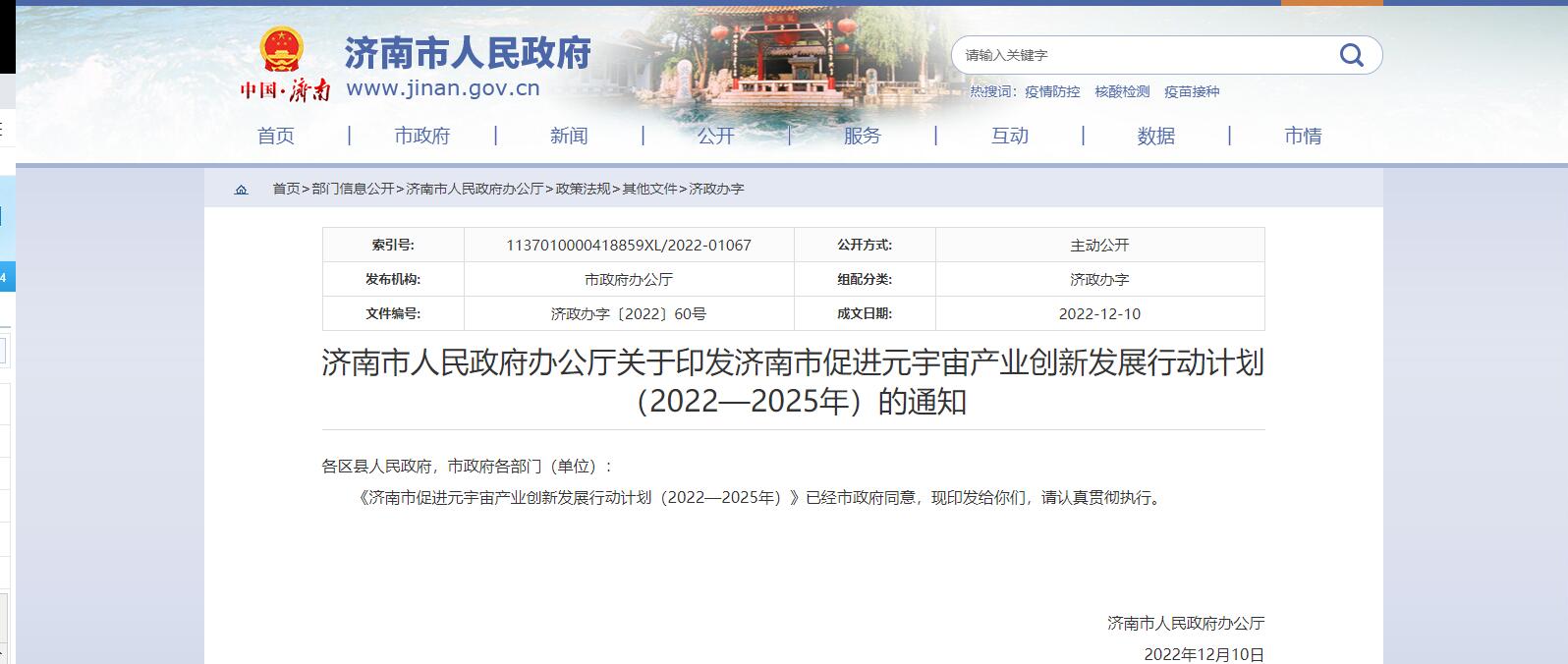 濟南市政府12月10日發(fā)布《濟南市促進元宇宙產(chǎn)業(yè)創(chuàng)新發(fā)展行動計劃(2022—2025年)》。山東省濟南市政府12月10日發(fā)布《濟南市促進元宇宙產(chǎn)業(yè)創(chuàng)新發(fā)展行動計劃(2022—2025年)》(以下簡稱《......