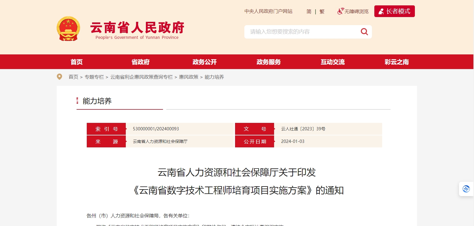 為加快數字云南建設,培養(yǎng)數字技術工程師隊伍,助力數字經濟和實體經濟深度融合。根據《專業(yè)技術人才知識更新工程實施方案》(人社部發(fā)〔2021〕73號)和《專業(yè)技術人才知識更新工程數字技術工程師培育項目實施......