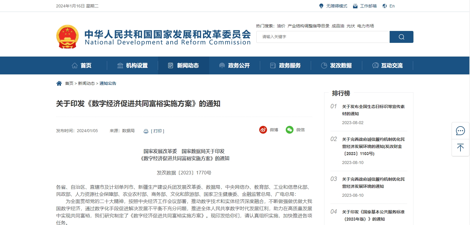 國家發(fā)展改革委、國家數據局印發(fā)《數字經濟促進共同富裕實施方案》
