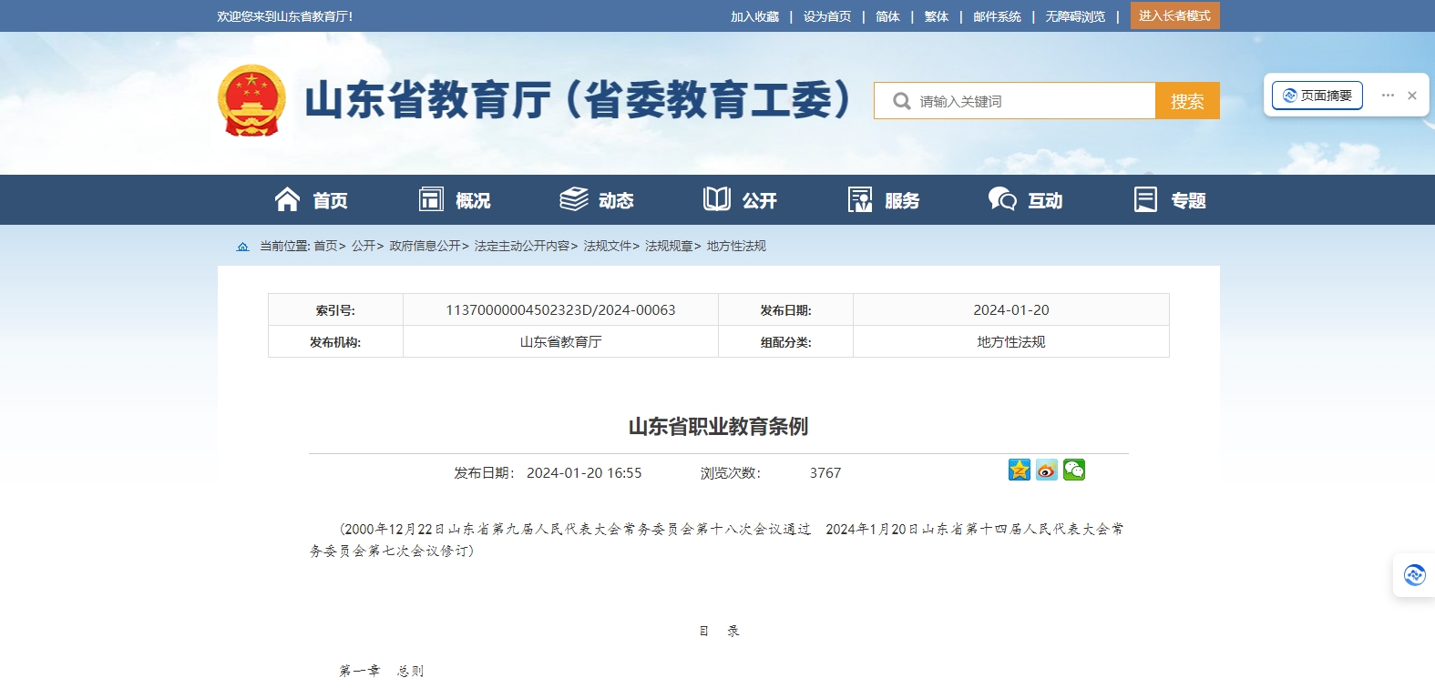 5月1日起施行,《山東省職業(yè)教育條例》修訂通過