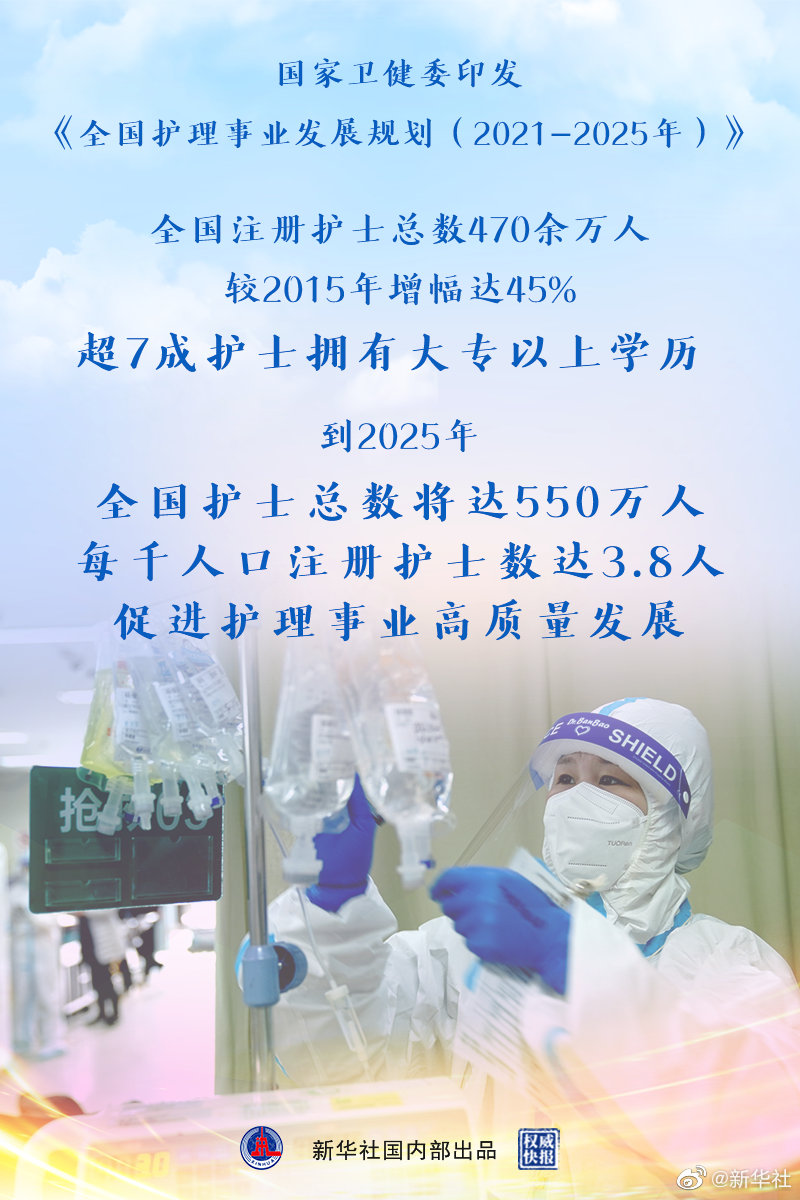 國家衛(wèi)健委近日印發(fā)《全國護(hù)理事業(yè)發(fā)展規(guī)劃(2021-2025年)》。規(guī)劃指出,2020年底,全國注冊護(hù)士總數(shù)470余萬人,較2015年增幅達(dá)45%。具有大專以上學(xué)歷的護(hù)士超70%,護(hù)士隊(duì)伍學(xué)歷素質(zhì)進(jìn)一......