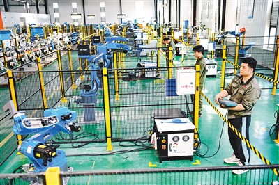 近年來,江西省贛州市加強(qiáng)青年技術(shù)人才技能培訓(xùn),促進(jìn)適齡青年實(shí)現(xiàn)技能成才。圖為贛州市贛縣區(qū)的一家智能裝備制造企業(yè)內(nèi),幾名青年技工在加緊調(diào)試出口的工業(yè)機(jī)器人訂單產(chǎn)品。   朱海鵬攝(人民視覺) ......