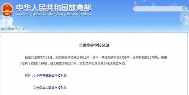 3013所!教育部發(fā)布全國高等學(xué)校最新名單